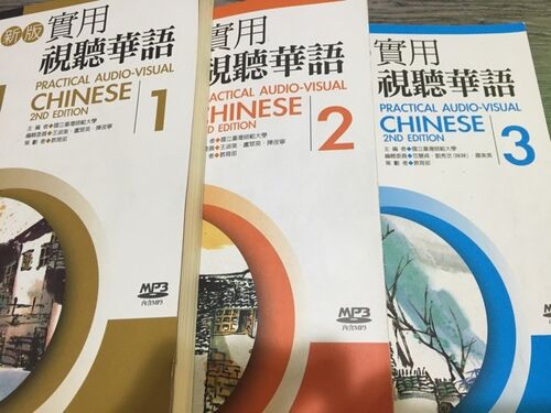 台湾の殆どの大学付属の語学学校では同じ教科書が使われて授業が行われています。何の教科書かと言うと、『實用 視聽華語』という主編者:國立臺灣師範大學の物を使います。第1〜第5までの5冊で、数字が上がるごとに難しくなります。日本で入手を試みるなら東…